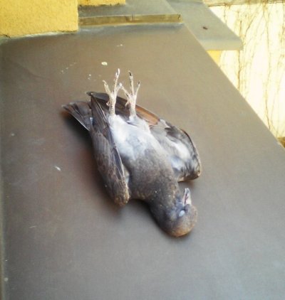 Kur gadījies, kur ne – šis pats balodis šodien jau ir nokritis no palodzes un tagad atrodas pagalma vidū.